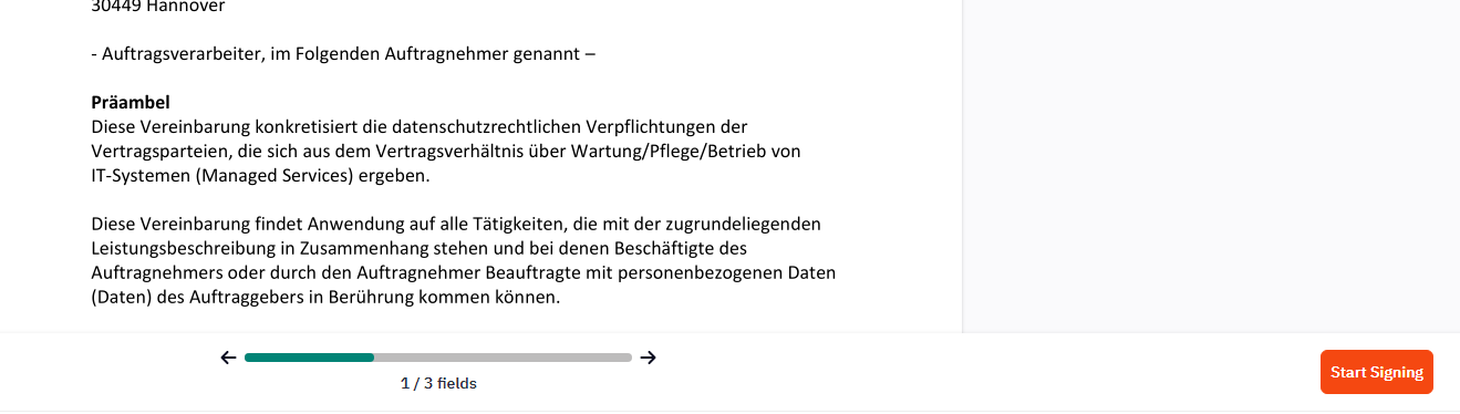 Ihre Unterschrift wurde nun getätigt. Nach ebenfalls erfolgter Unterschrift durch Frank Böttger erhalten Sie erneut eine Mail mit einem Link zum vollständig von beiden Seiten unterzeichneten Vertrag im PDF-Format, welches Sie für Ihre eigenen Unterlagen herunterladen und speichern oder bei Bedarf auch zusätzlich ausdrucken können.