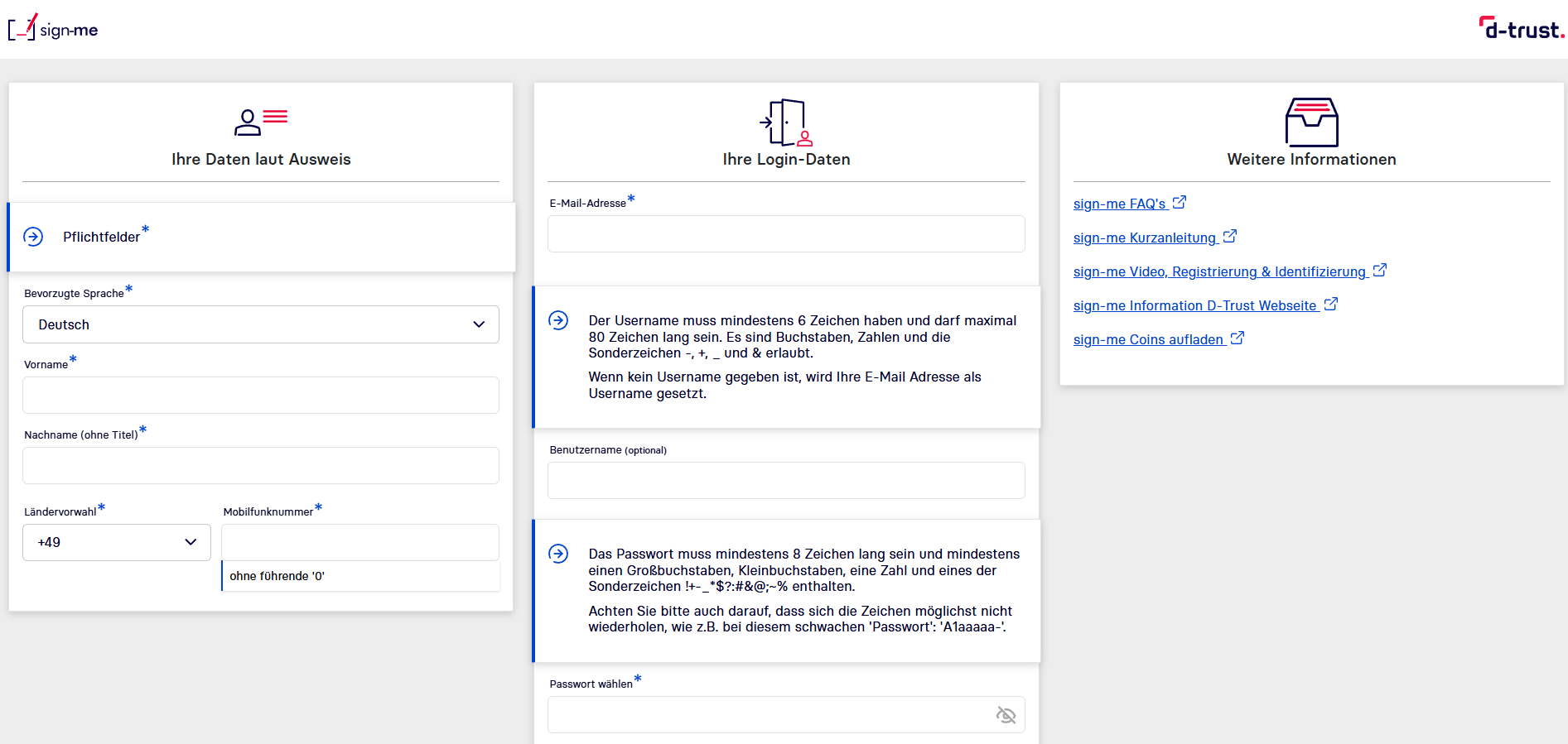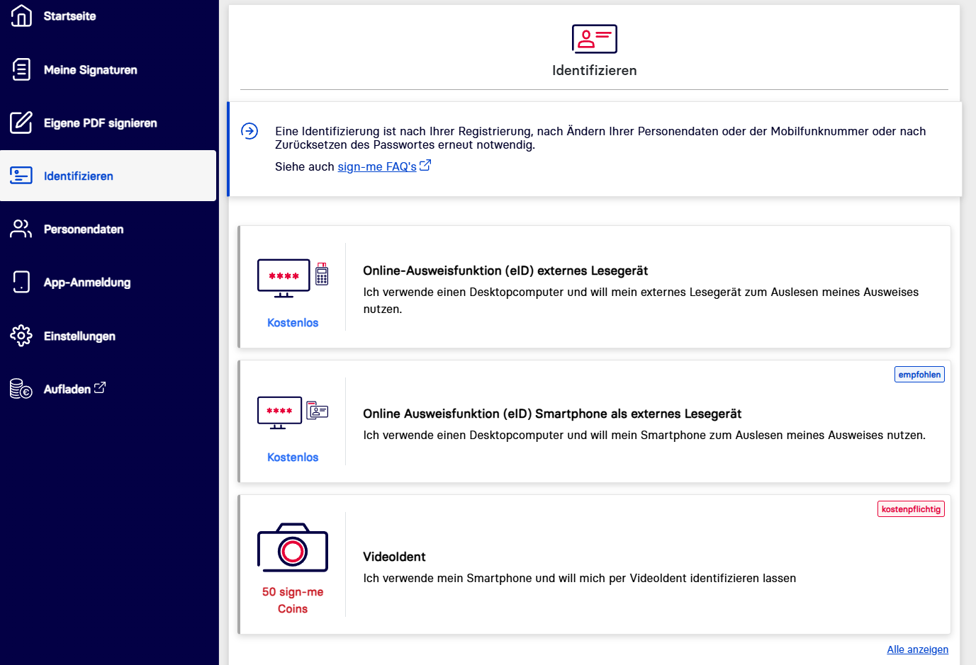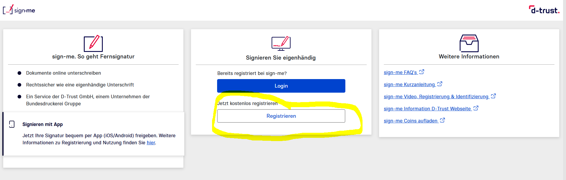 - Weiterführende Informationen: Kurzanleitung von sign-me als PDF, als Video und Webseite