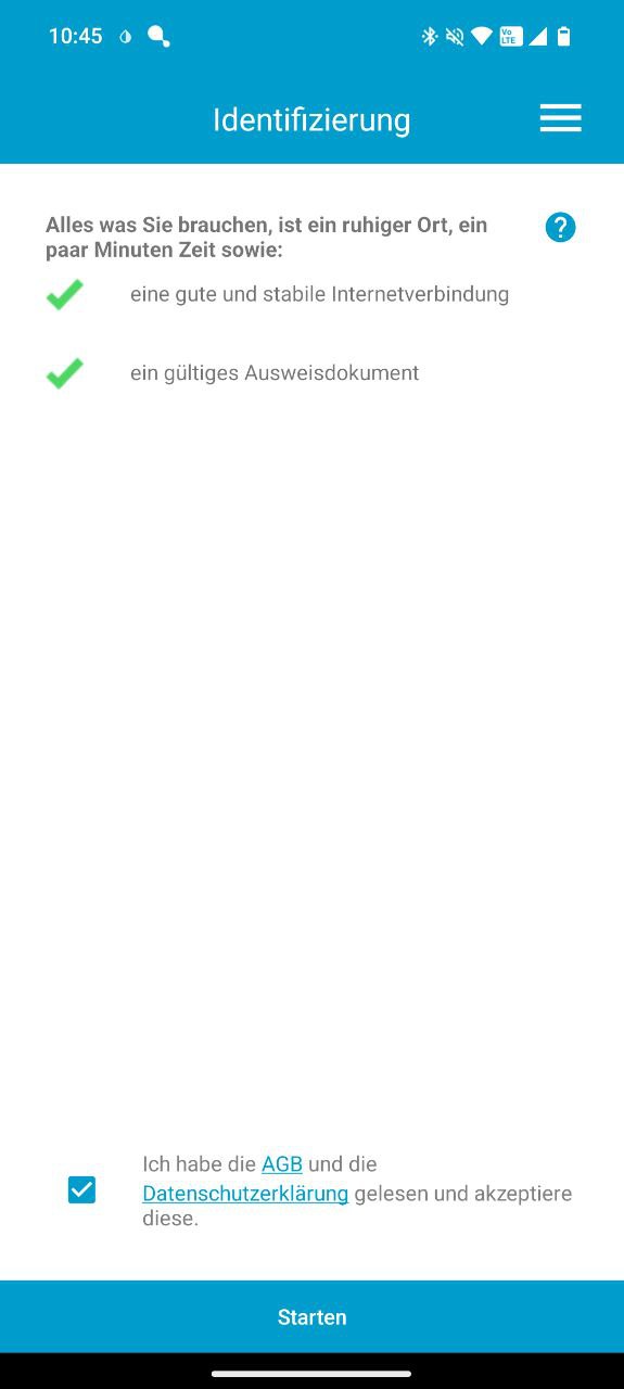- Nach der erfolgreichen Registrierung geht es mit der Identifizierung weiter. Das Kann über den Online-Ausweis (eID) oder VideoIdent erfolgen.