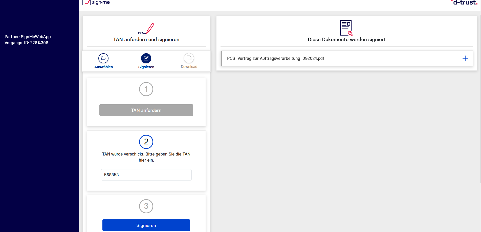 - Vor der Unterschrift erhalten Sie eine TAN per SMS.