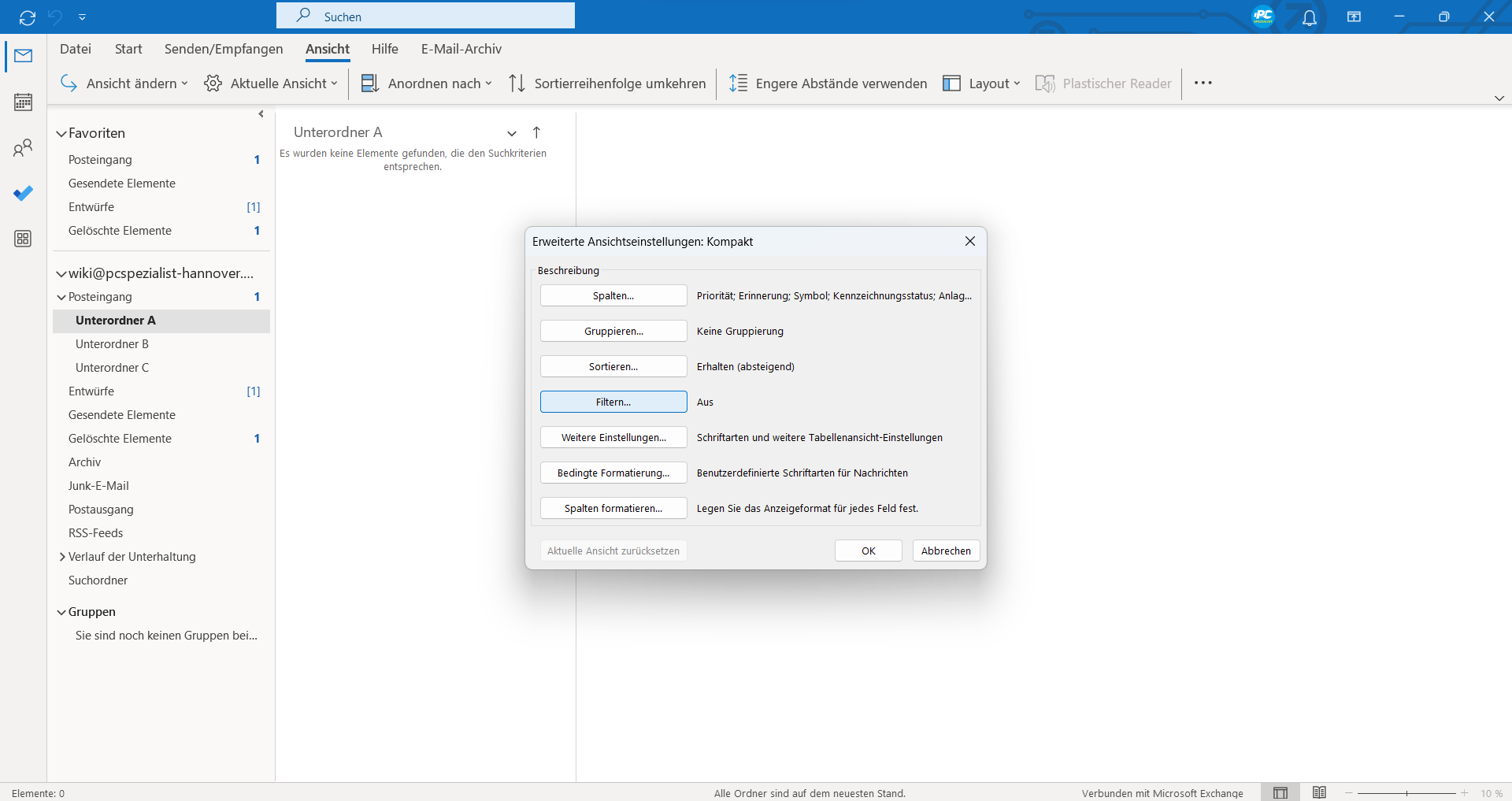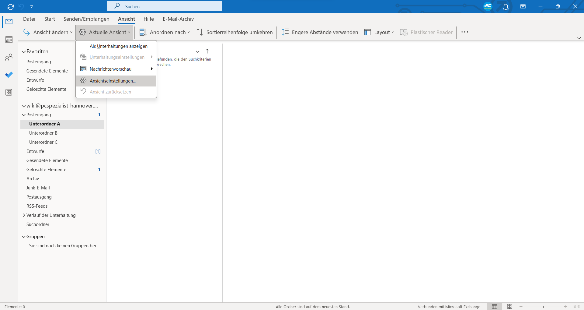 1. Im Unterordner den Reiter Ansicht öffnen und über Aktuelle Ansicht zu den Ansichtseinstellungen navigieren.