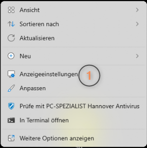 Rechtsklick in einem freien Bereich auf dem Desktop und Linksklick auf Anzeigeneinstellungen (1)