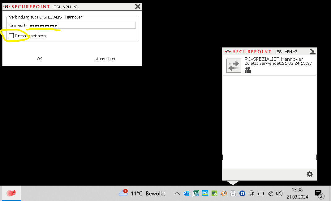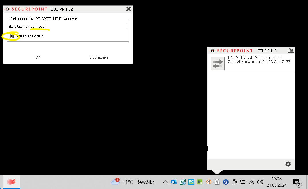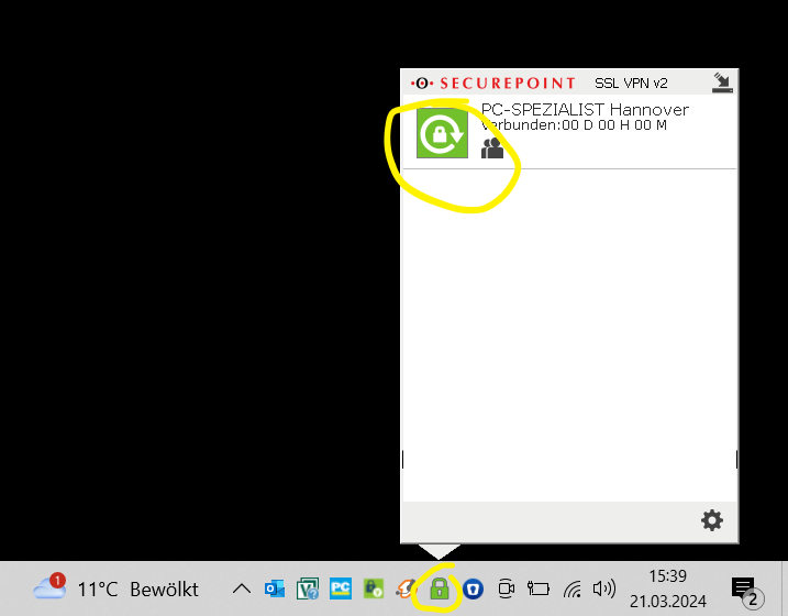 - Prüfen Sie, ob Securepoint SSL VPN bereits ausgeführt wird.