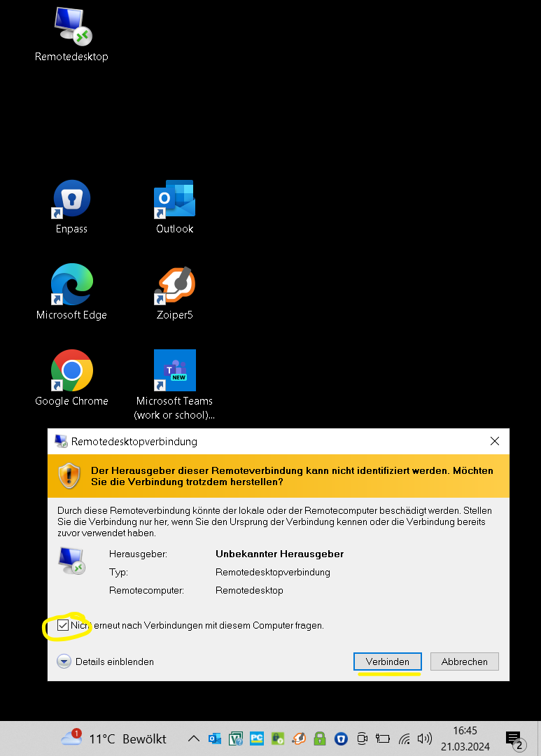 Verbindung zu einem Remotedesktop (Terminalserver) aufbauen