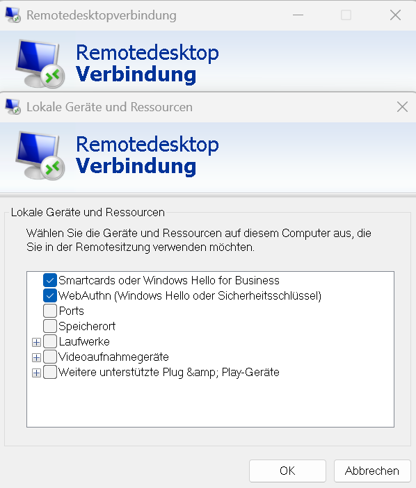 Hier haben Sie zum Beispiel die Möglichkeit, die Geräte für "Videoaufnahme" einzubinden. So werden Videokonferenzen auch auf dem Terminalserver möglich.