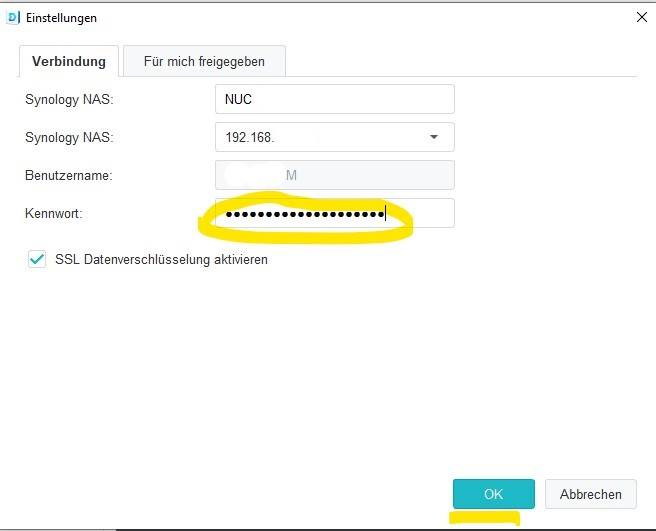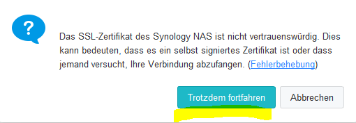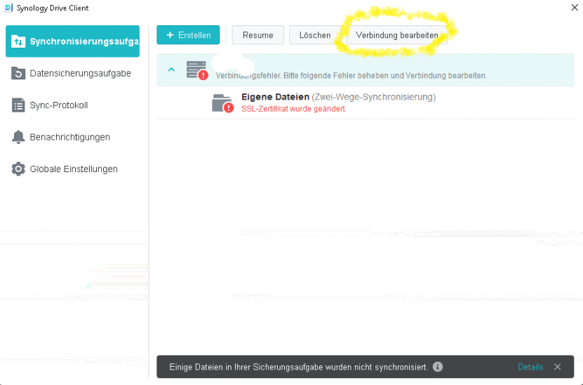 Synology Drive Zertifikatswarnung - rotes Ausrufezeichen