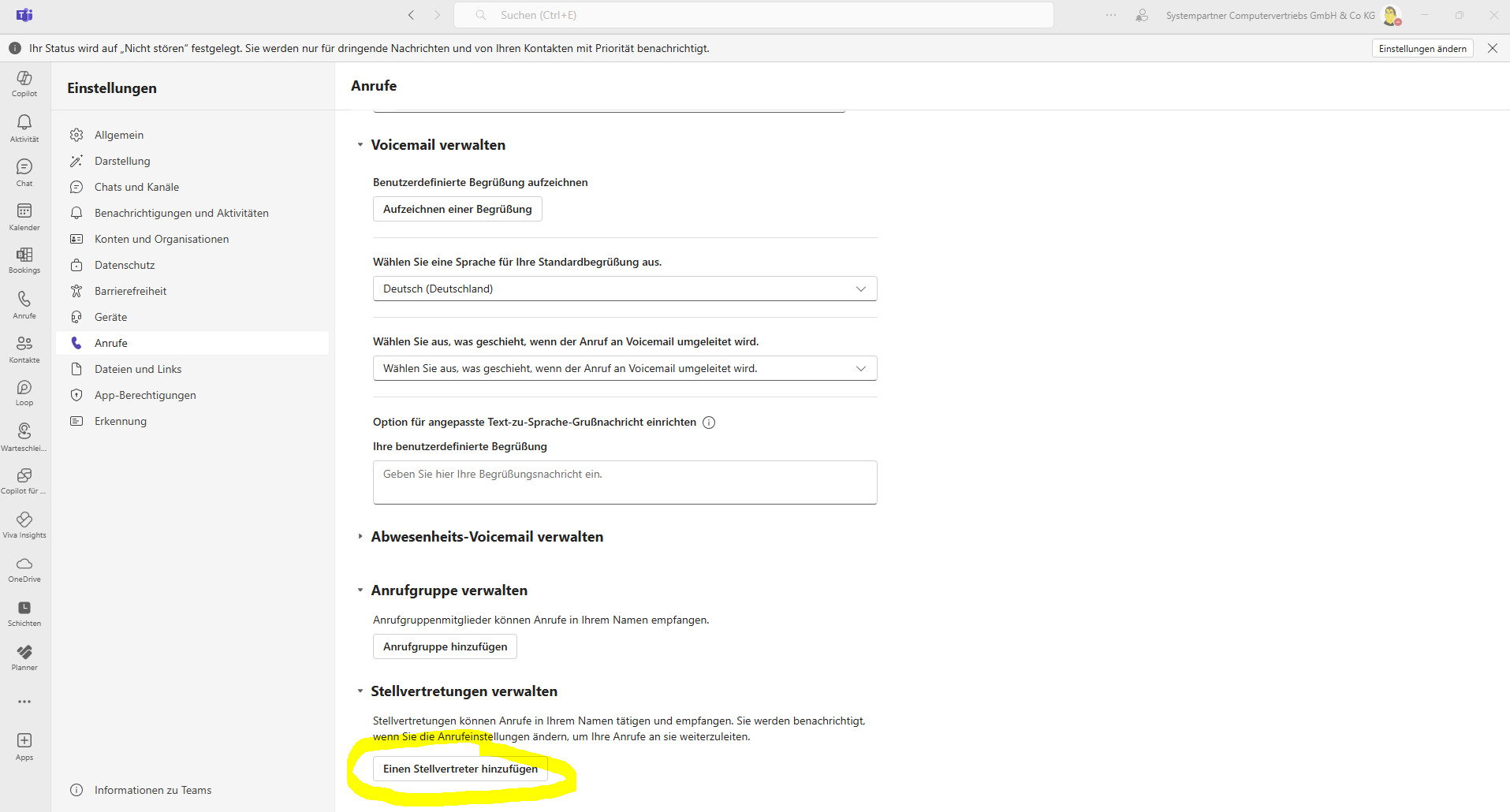 - Navigieren Sie dann zu den Optionen Anrufe und klicken Sie ganz unten auf Einen Stellvertreter hinzufügen