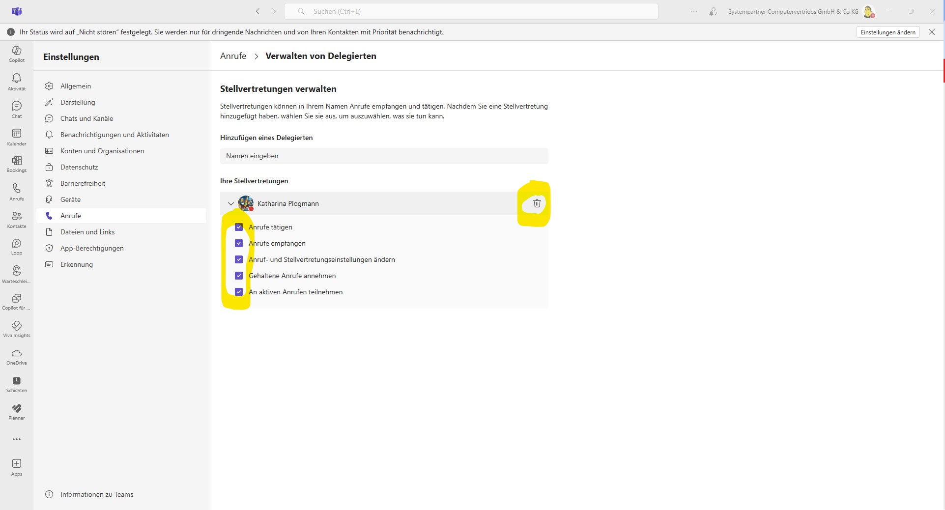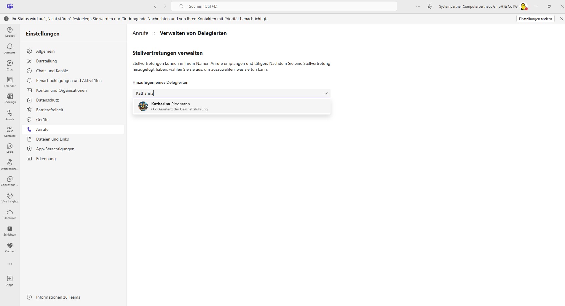 Assistenzfunktion in Microsoft Teams (Delegation)