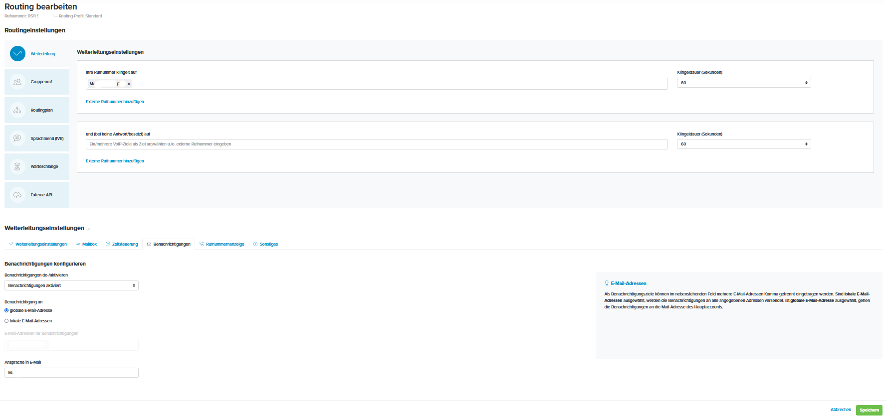 5. Klicken Sie auf die Rufnummer und wählen Sie bei Benachrichtigungen unten Ihre gewünschten Einstellungen aus