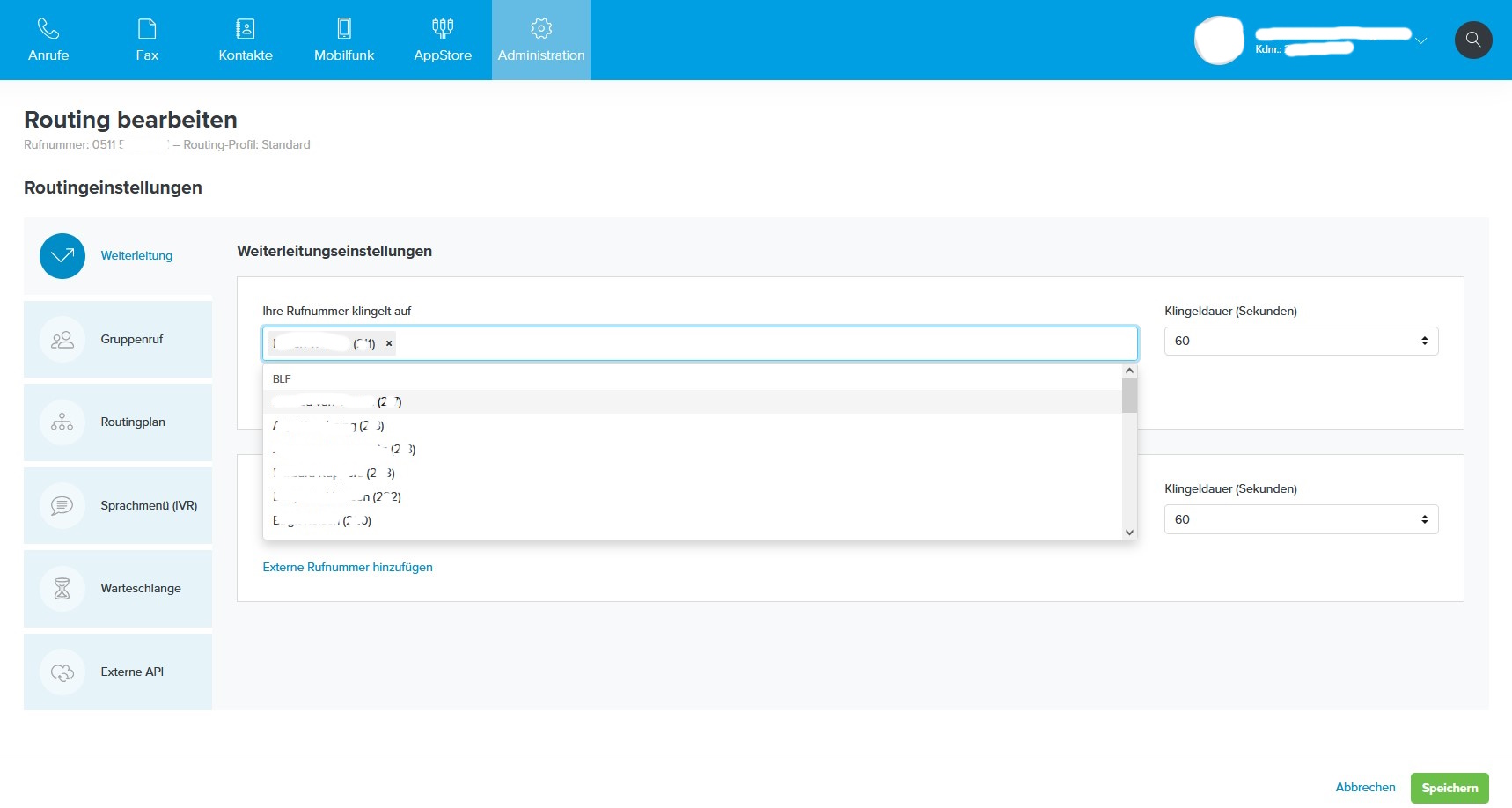 - Klicken Sie auf die Rufnummer und wählen Sie bei Weiterleitung eine oder mehrere Menschen aus dem Kollegium aus sowie Entfernen Sie sich selbst aus der Liste
