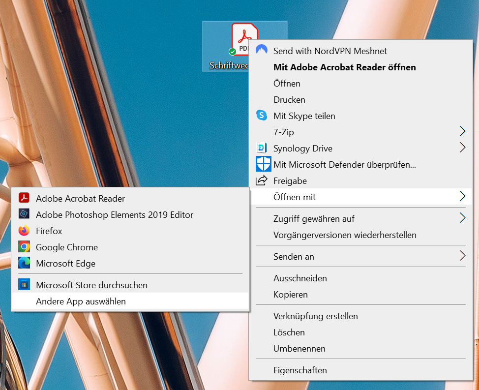 Rechtsklick auf die Datei bzw. den Dateityp, der zukünftig mit einem anderen Programm / einer anderen APP geöffnet werden soll